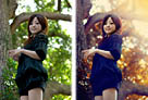 PS给街边美女加上暗青黄色调