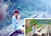 Photoshop打造唯美的青蓝色铁轨美女图片