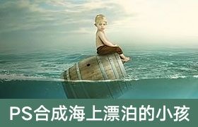 PS合成乘木桶在海上漂泊的小孩教程
